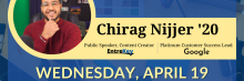 Chirag Nijjer '20 will cover approaches to identify opportunities for innovation within large organizations and explore methods to effectively communicate and implement new ideas.