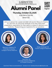 A virtual panel and a Q&A session with our alumni panelists (Maryum Cheema ’21- Columbia University College of Dental Medicine, Eman Shahzad '23 - TOURO College of Medicine and Dan Elmi ’22- Temple University School of Medicine) who will reflect on their journey to dentistry and medicine so far. They will also share with us the steps they took to explore and prepare for a career in the health professions, including challenges they faced along the way and how they overcame them. Click here to register.