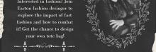 Interested in fashion? Join Easton fashion designer to explore the impact of fast fashion and how to combat it. Design your own tote bag! $5.00 fee