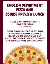 Join Engish faculty and students from across campus to learn about English Department course offerings for spring 2026.