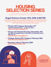 This session is intended for students looking to live in a more independent living environment. Information will be shared about the various housing units available to seniors off-campus and will share a bit about similar living units on-campus for sophomores and juniors.