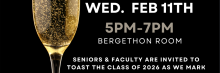 Join your classmates and faculty and toast to the class of 2026! Roughly 100 Nights before graduation, enjoy light refreshments and mingling with your peers.