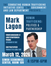Join us for an evening lecture with Mark Lagon, former United States Ambassador-at-Large to Monitor and Combat Trafficking in Persons and current Chief Policy Officer at Friends of the Global Fight Against AIDS, Tuberculosis and Malaria.