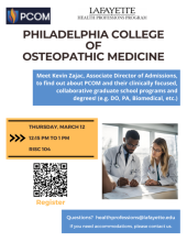 Join us for an information session with Mr. Kevin Zajac, Associate Director of Admissions, to learn about their clinically-focused and collaborative doctoral and graduate school programs (e.g., Osteopathic Medicine (DO), Physician Assistant Studies (PA), and Biomedical Sciences (MS)). Register here.