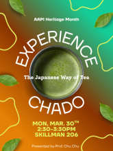 Join us for an introduction to chadō, the Japanese way of tea. In this demonstration, Professor Chu Chuwill invite two volunteers to act as guests in a traditional Japanese tea ceremony, and walk participants through etiquettes of serving and receiving tea. You will learn about foundamental tools used in a tea ceremony, how to properly use and appreciate tools such as chawan, the tea bowl, as well as core principals in chado.